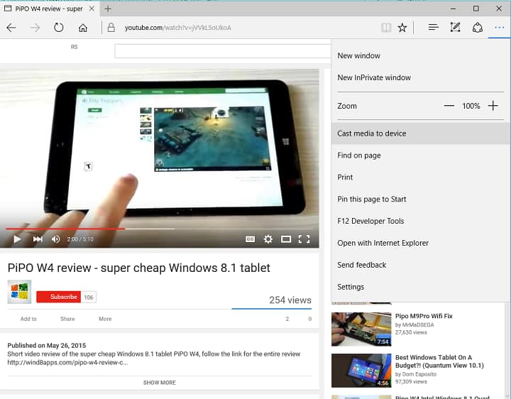 En lugar de reproducir un video de YouTube en el navegador Microsoft Edge, ahora puedes ordenar a que el mismo se vea en un televisor externo si ya has actualizado la más reciente versión de Windows 10.