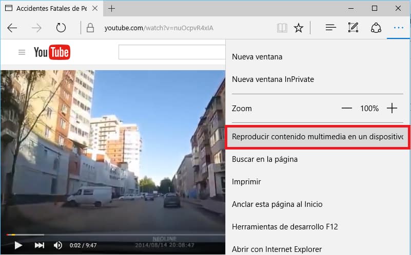 Aquí esta el primer truco que vamos a mencionar, el cual se apoya en la nueva función que integró Microsoft en el navegador Edge de Windows 10; si logras ver a una nueva función que dice «reproducir contenido multimedia en un dispositivo» entonces tu sistema operativo ya cuenta con la más reciente actualización.